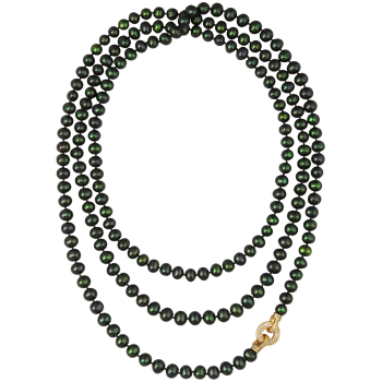Колье (жемчуг зеленый 8-9мм, фианит; покрытие золото) 160см