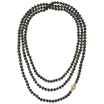 Изготовлено из ювелирного сплава на основе латуни с гальваническим покрытием золотом. Колье выполнено из натурального зеленого жемчуга высшего качества диаметром 8-9мм и украшено декоративным замком из фианитов белого цвета. Длина 200см. *Цвет и форма жем