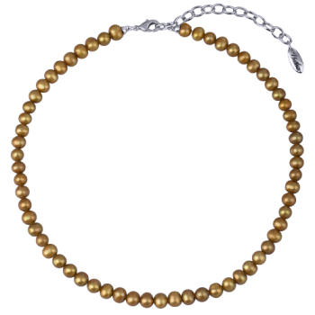 Изготовлено из ювелирного сплава на основе латуни с гальваническим покрытием родием. Изделие украшает золотистый жемчуг диаметром 6-7мм. Длина колье 37см. Удлинитель 6см.*Цвет и форма жемчужин может отличаться от изображенной на фото.