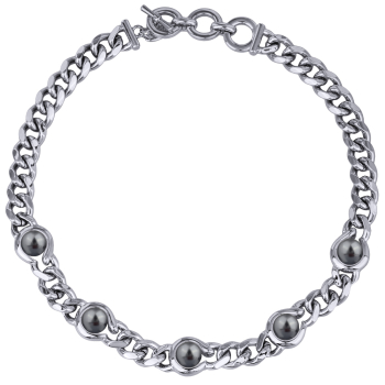 Колье Знаки (Майорка темно-серая 12мм; покрытие родий) 43см, Есть комплект