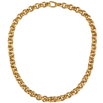 Изготовлено из ювелирного сплава на основе латуни с гальваническим покрытием античным золотом. Круглое рифленое плетение диаметром 9, 3мм. Длина 45см.