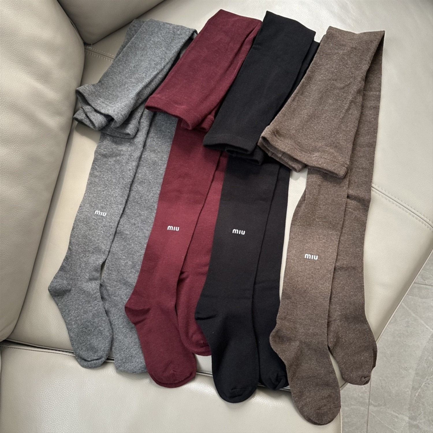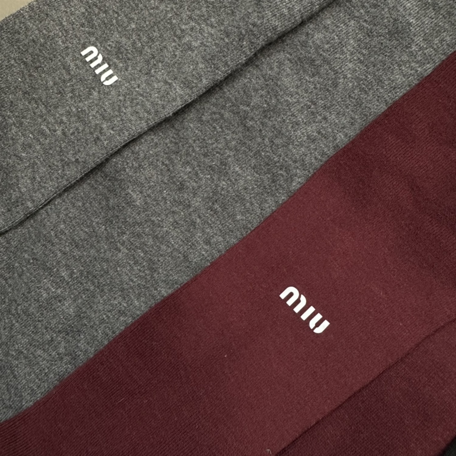 Новые хлопковые колготки и леггинсы полотняного переплетения с горячей маркировкой Miu Miu доступны в четырех цветах и