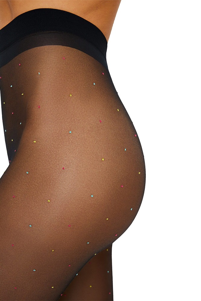 ID товара: 1065048 Состав: 71% Полиамид, 17% Полиэстер, 10% Эластан, 2% Хлопок Сезон: Демисезон Рисунок: Горох Основная ткань: Полиамид Вид колготок: Фантазийные Плотность: 20 den Страна бренда: Италия Страна производства: Китай Женские фантазийные колготки MiNiMi в разноцветный горошек, с эффектом обнаженности. Превосходно облегают благодаря плоским швам и удобному поясу. Гигиеничная хлопковая ластовица, усиленный мысок и формованная ступня создают дополнительный комфорт. Горошек - один из самых актуальных принтов на протяжении нескольких модных сезонов. Он смотрится изящно, и при этом добавляет образу эффектный акцент. В модели Stile de Arte классический и знакомый многим рисунок получил новое прочтение - благодаря сочетанию нескольких ярких цветов и спокойного базового оттенка, горошек напоминает россыпь конфетти, выглядит более броско, и неизменно привлекает внимание. Комментарии к товару