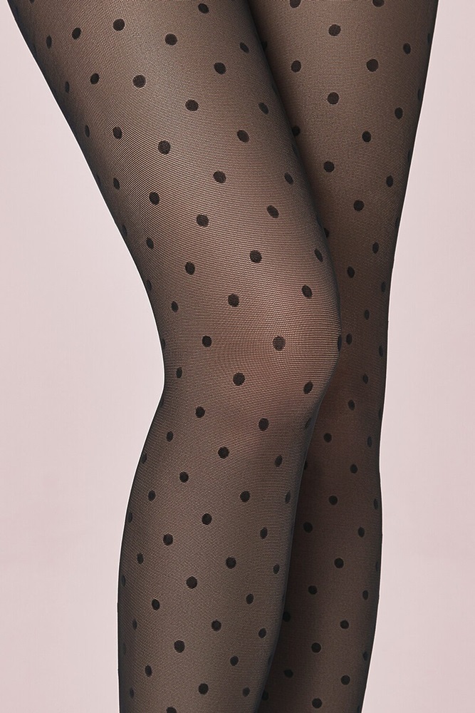 Страна производства: Китай Модные полуматовые колготки 40 DEN в крупный горошек, без трусиков. Плоский шов, невидимый мысок.