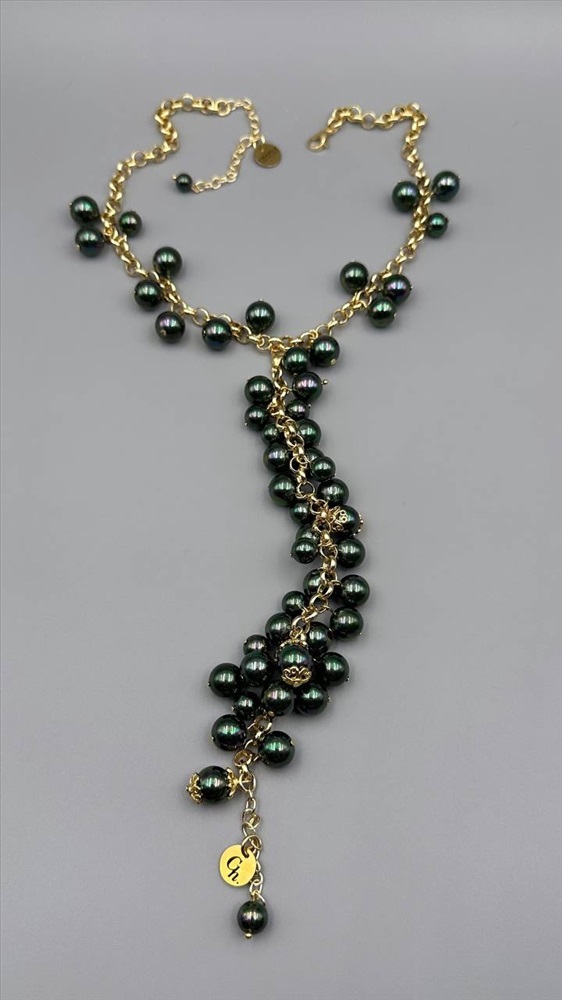 Жемчужины словно ягодки смородины прикреплены к веточке . Вкусное и яркое украшение