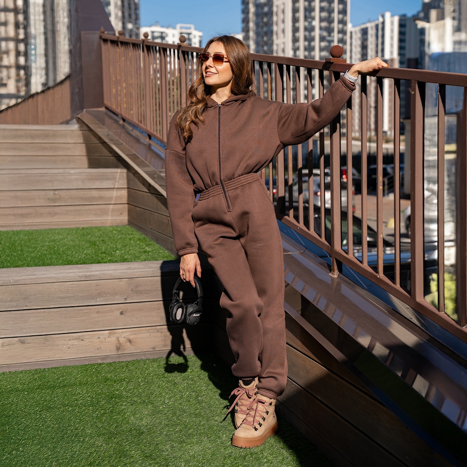 Женский комбинезон на молнии, резинкой по линии талии.Материал: French terry с/н - футер 3-х нитка с начесом. Одна из самых плотных разновидностей футера. Тёплый, приятный на ощупь материал с гладкой лицевой стороной и мягким, толстым ворсом с изнанки.В стирке требует более бережного обращения. Рекомендуется утюжить и стирать вывернутыми (особенно изделия с принтом) на изнаночную сторону при температуре 30 градусов.ВНИМАНИЕ! Оттенок цвета ткани может отличаться в зависимости от партии товара, также могут быть незначительные отличия цветовых оттенков разных деталей одного изделия. Производители ткани не считают это браком, объясняя это технологическими особенностями производства. Цветовая гамма товара может быть изменена (в рамках допуска) производителем трикотажных полотен в зависимости от серии поставки без предварительного уведомления.В связи с этим, подбор комплекта одежды в одном оттенке возможен только в процессе формирования единого заказа.Состав: 70% Cotton 30% Polyester