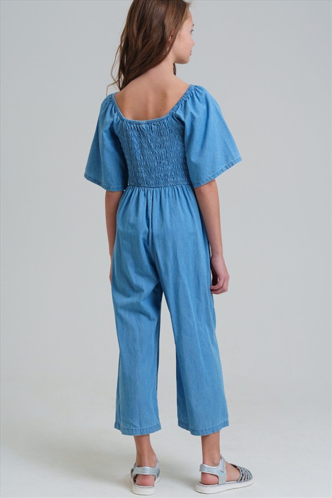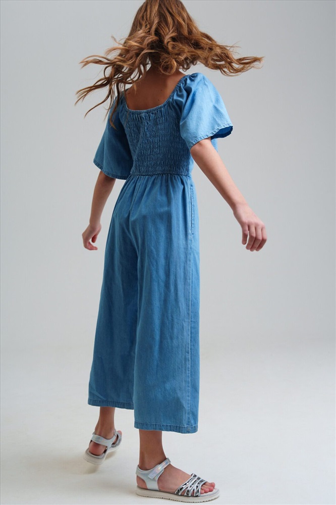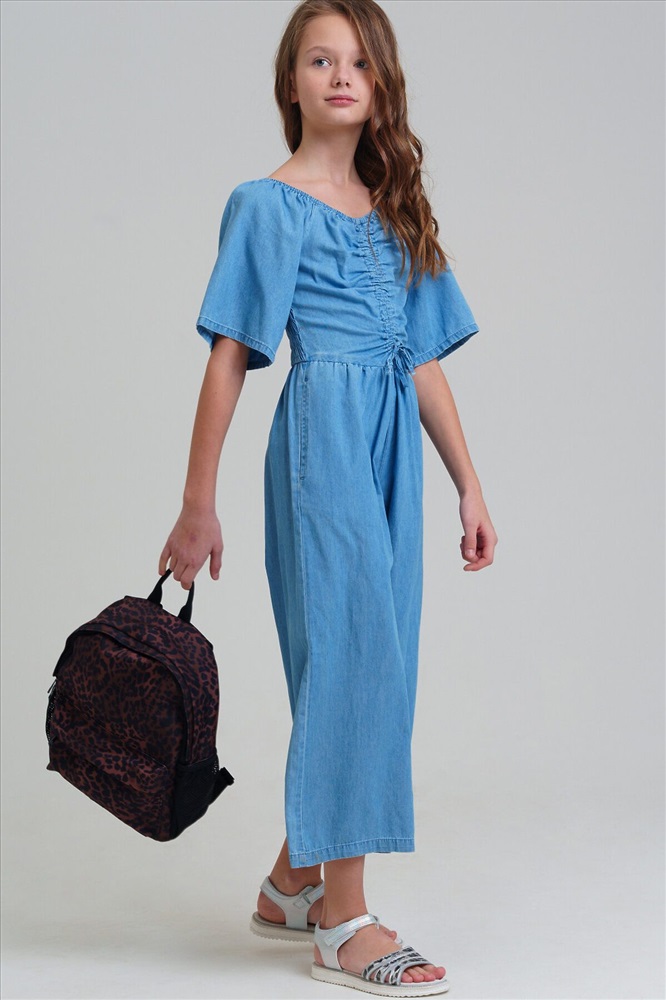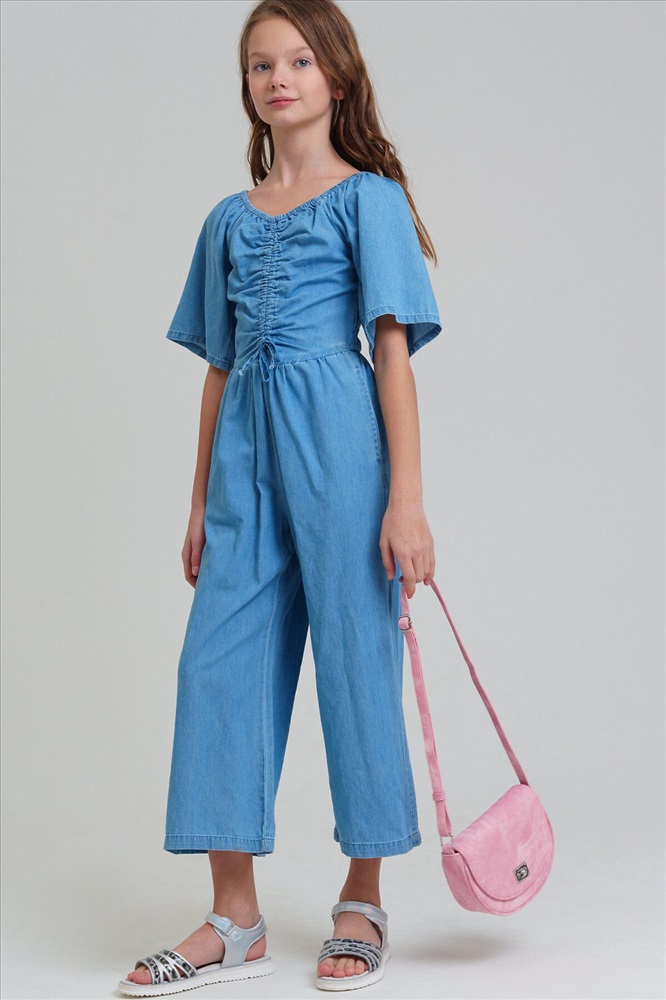 Страна производства: Китай Джинсовый комбинезон для девочки подростка. Приталенный силуэт. 100% хлопок. Без застежек. Спинка с эластичной резинкой. Брюки - кюлоты. Модель выполнена из качественного и плотного текстиля.