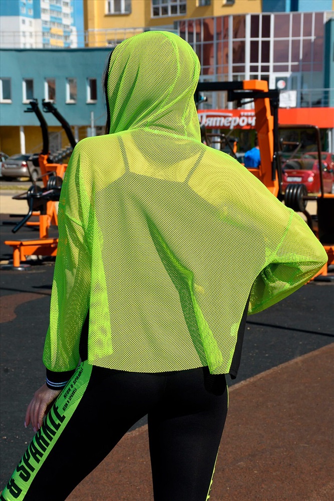 ID товара: 681507 Состав: Вискоза 50%, Полиэстер 45%, Лайкра 5%; Брюки- Вискоза 92%, Лайкра 8% Сезон: Весна/Лето Длина: Средняя Фасон: Спортивный Рукав: Длинные Вид застежки: Молния Крой брючин: Облегающий Основная ткань: Вискоза Стиль: Спортивный Страна бренда: Россия Страна производства: Россия Комплект состоит из толстовки и майки. Толстовка прямая, свободная, с капюшоном из сетки, на молнии. Рукав длинный, из сетки, на эластичном манжете. Спинка удлиненная, из сетки. В верхней части полочки расположены кокетки из сетки. На полочку настрочены накладные карманы с клапанами из сетки. Майка на бретелях, полуприлегающая. Комментарии к товару