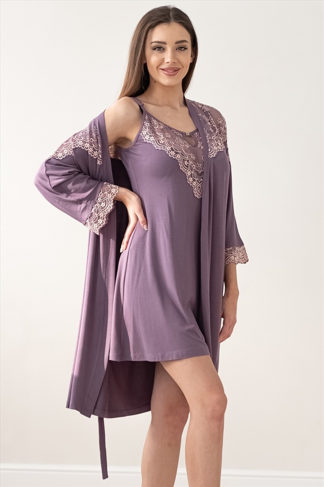 Состав: 92% вискоза 8% эластан Модель: Комплект Алиса Тип товара: пеньюар с сорочкой Материал: вискоза | вискоза Бренд: Batistcorp Ivanovo Длина: средняя длина Карман: без карманов Назначение: для дома НДС: 5% Отделка: с манжетами | с поясом Рейтинг: Рейтинг 4 и выше Рисунок: однотонные Рукав: без рукава | рукав 3/4 Сезонность: лето | осень | весна | зима Силуэт: прямой Стиль: домашний | молодежный Воротник: без воротника Застежка: на запах | пояс Пеньюар состоит из халата и сорочки. Халат прямого силуэта, на запах с поясом, длиной до середины колена. Рукав-кимоно, длиною до локтя. Халат в области плеча и низ рукава декорирован кружевом. Сорочка прилегающего силуэта, длиной до колена, без рукава. По переду и спинке сорочка декорирована кружевом. Горловина полочки оформлена пикантной капелькой и декорирована металлическим элементом. Таблица размеров и веса