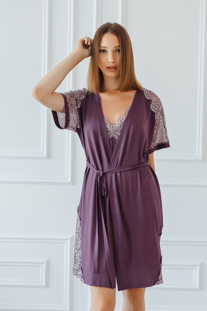 Застежка: на запах | пояс Красивый комплект из сорочки и халатика с роскошной кружевной отделкой.