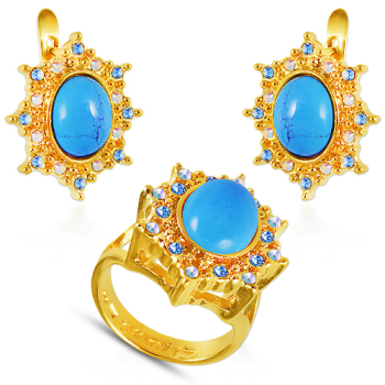 Комплект (бирюза, кристаллы микс; покрытие золото)