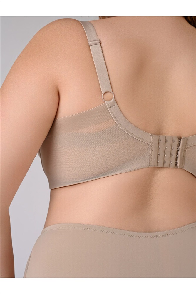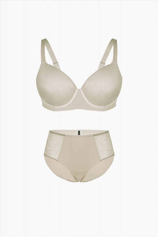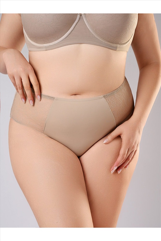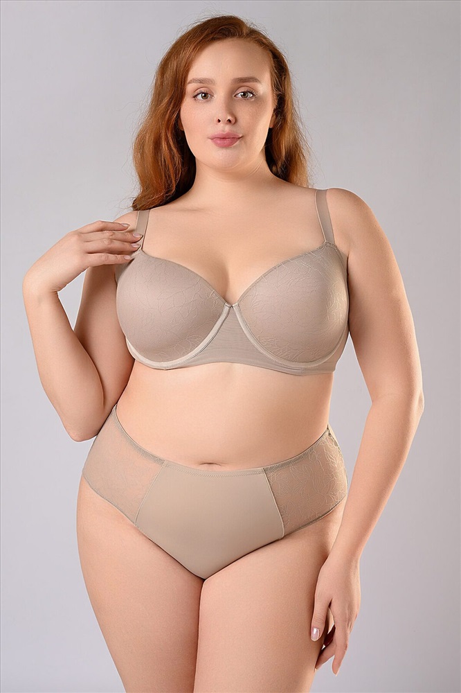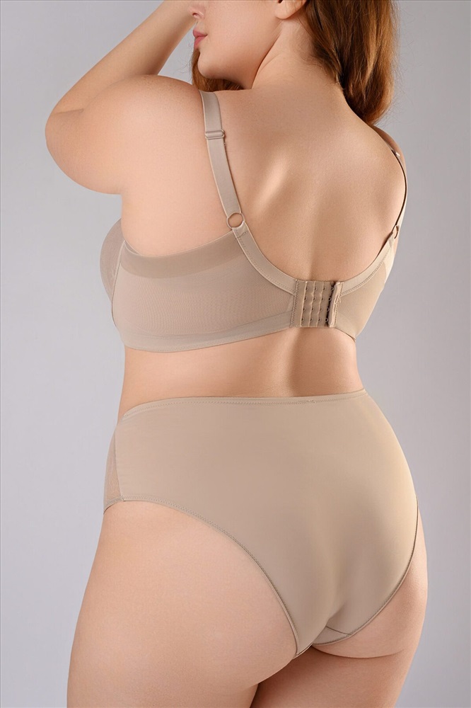 Комплект нижнего белья из полиамида включает бюстгальтер и трусы-слипы. Бюстгальтер на косточках надежно поддерживает грудь. Поролоновые чашки без пушапа, украшенные гладким кружевом, создают естественный силуэт груди. Пояс изготовлен из двойного слоя сетчатой ткани, что делает бюстгальтер дышащим и приятным в носке. Тонкие регулируемые бретели и застежки на крючках сзади позволяют добиться оптимальной посадки бюстгальтера. Трусы-слипы на тонкой эластичной резинке крепко облегают талию и не натирают кожу. По бокам имеются сетчатые вставки с гладким кружевом. К бюстгальтеру идут трусы-слипы, размерами: 85C-XL, 85D-XL, 90C-XL, 85E-XXL, 90D-XXL, 90E-XXL, 90F-XXXL, 95C-XXXL, 95D-XXXL.