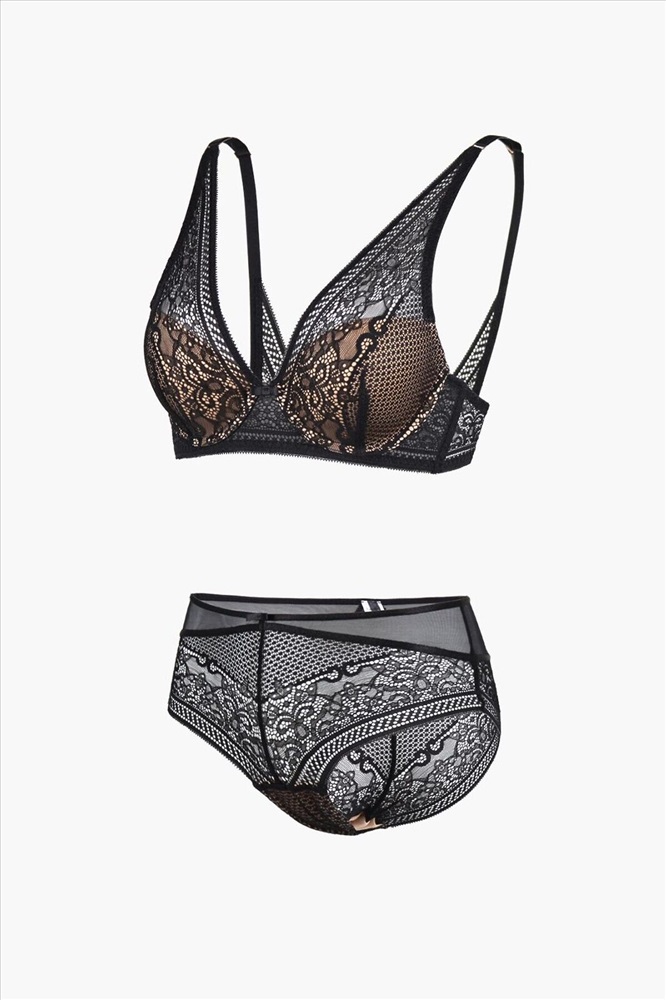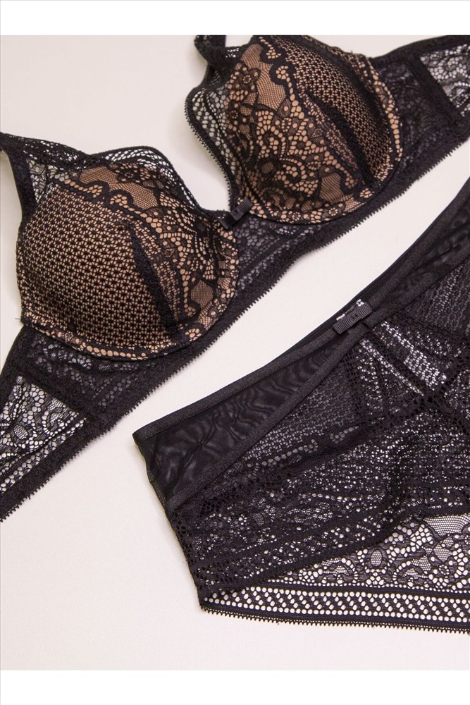 ID товара: 1197517 Состав: 53% Полиамид 47% Эластан Сезон: Демисезон Основная ткань: Полиамид Модель трусов: Слипы Модель лифа/бюстгальтера: Пуш-ап Страна бренда: Россия Страна производства: Россия Комплект нижнего белья от торговой марки Индефини. В комплекте бюстгальтер и трусики. Бюстгальтер из полиамида, черного цвета, из кружевной ткани, на косточках, с косточками по бокам, с небольшим Push-up, с обрамлением, на тонких лямках, лямки регулируются. Трусы-слипы из полиамида, черного цвета, из кружевной ткани, с обрамлением, на мягкой резинке, с высокой посадкой. К бюстгальтеру идут трусы слипы, размерами: 75B-S, 75C-M, 80B-M, 80C-L, 85B-XL. Комментарии к товару