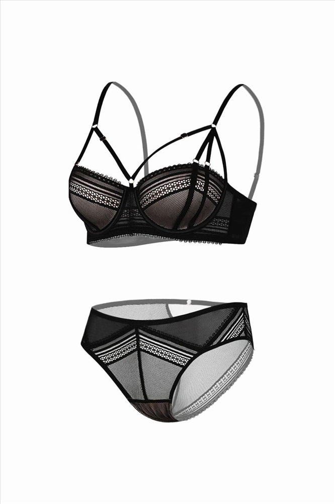 Страна производства: Китай Комплект нижнего белья от торговой марки Индефини. В комплекте бюстгальтер и трусики. Бюстгальтер из полиамида, черного цвета, на косточках, без Push-up, с косточками по бокам, с кружевными вставками и обрамлением, с портупеей, на тонких лямках, на широком поясе, лямки регулируются. Трусы-слипы из полиамида, черного цвета, из кружевной ткани, с обрамлением, с декоративным вырезом сзади, на мягкой резинке, средней посадки. К бюстгальтеру идут трусы слипы, размерами: 75B-S, 75C-M, 80B-M, 80C-L.