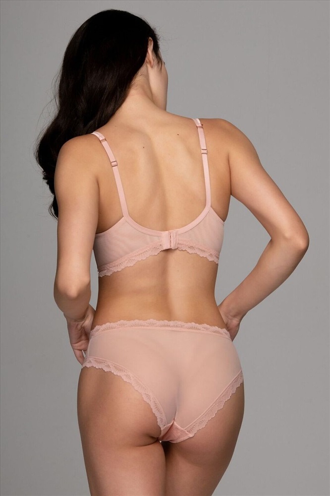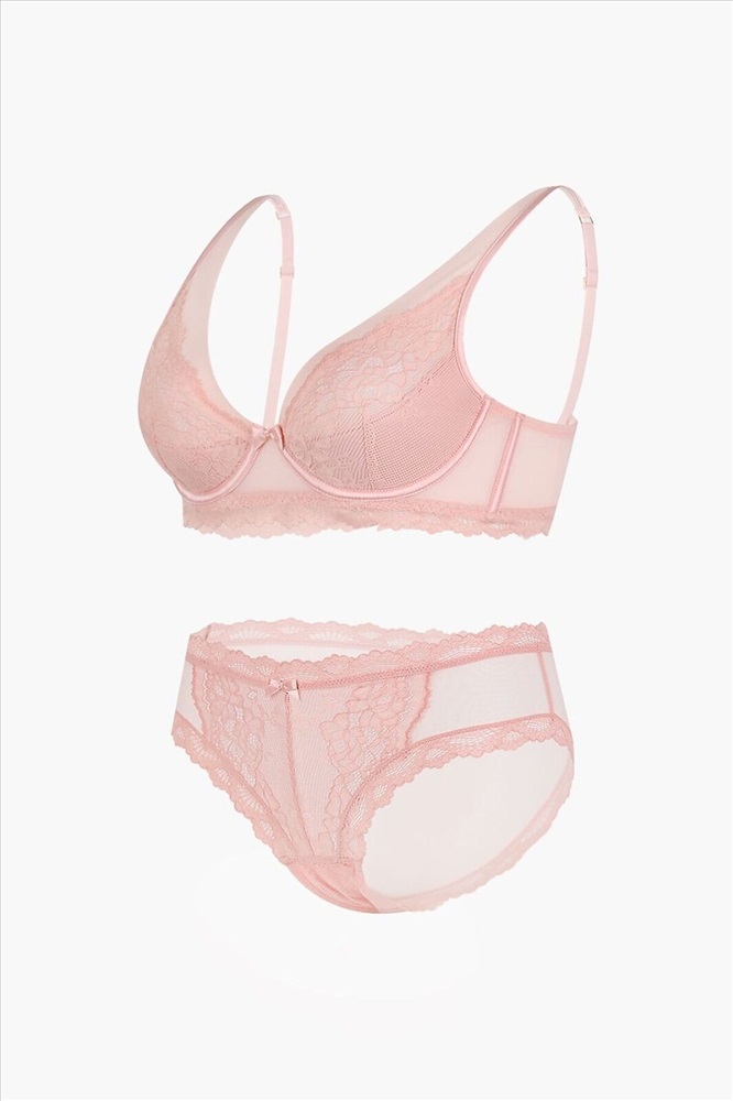 Страна производства: Китай Комплект нижнего белья от торговой марки Индефини. В комплекте бюстгальтер и трусики. Бюстгальтер из полиамида, розового цвета, с кружевными вставками и обрамлением, с формованными чашками, на косточках, без Push-up, с косточками по бокам, на поясе из микросетки, на тонких лямках, на застежках-крючках, лямки регулируются. Трусы-слипы из полиамида, розового цвета, из кружевной ткани, со вставками из микросетки, с обрамлением, на мягкой резинке, средней посадки. К бюстгальтеру идут трусы слипы, размерами: 75B-S, 75C-M, 75D-L, 80B-M, 80C-L, 80D-XL, 85B-XL, 85C-XL.