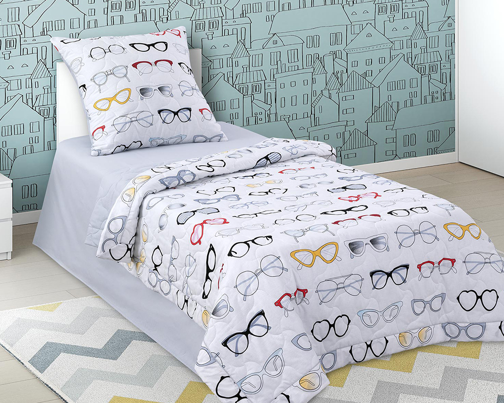 Комплект для сна с одеялом и стеганными наволочками Очки, перкаль