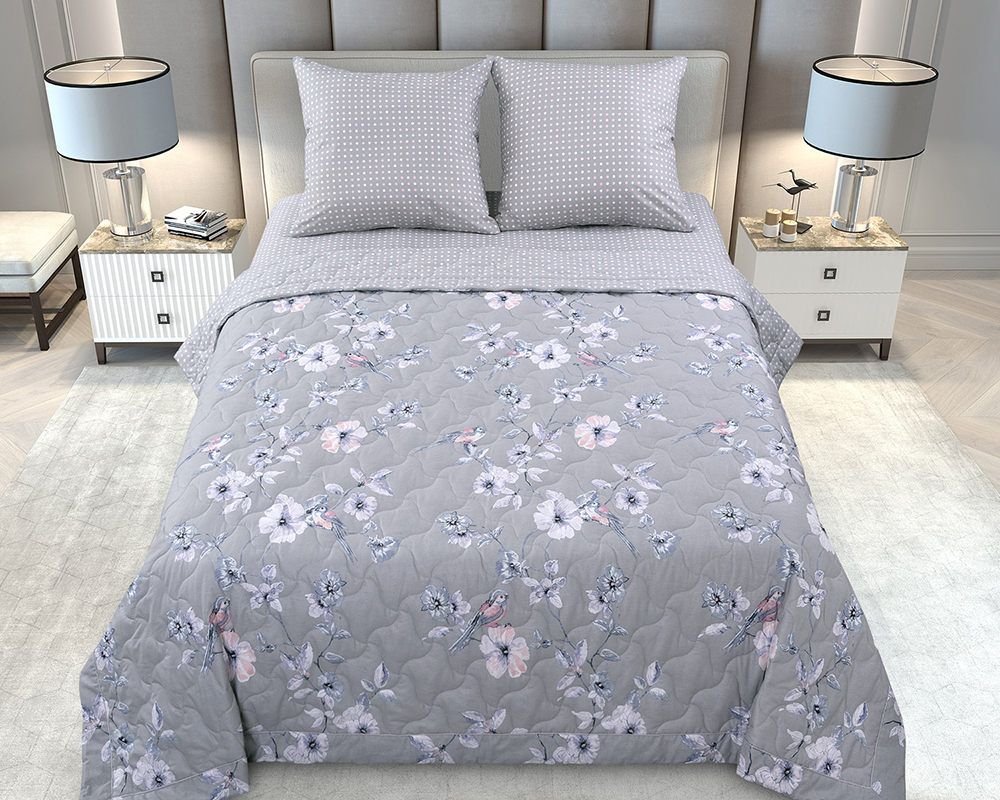 Сезонность: лето | осень | весна | зима Комплект для сна изготовлен из перкаля. Ткань отличается плотной и тонкой фактурой, высокими эстетическими и практическими качествами, приятна на ощупь и очень комфортна. По прочности перкаль превосходит многие материалы, выполненные из более толстых волокон. Уникальность комплекта для сна заключается в том, что вместо традиционного пододеяльника и наволочек в комплект входит тонкое стеганое одеяло, выполненное из ткани того же дизайна, что и основной комплект. Преимущества данного комплекта в том, что стёганые изделия практичны в использовании. Заправленные подушки в стеганые наволочки можно использовать как декоративные. А одеяло одновременно полностью справиться с функцией покрывала. Цвет ткани может незначительно отличаться от фото. Характеристики размера 1,5 спальный: Размер наволочек 70х70 (2 шт) (молния) Размер простыни 180х220 (1шт) (без резинки) Размер одеяла 140х205 (1 шт) Характеристики размера 2 спальный с европростыней: Размер наволочек 70х70 (2 шт) (молния) Размер простыни 220х240 (1шт) (без резинки) Размер одеяла 172х205 (1 шт) Характеристики размера Евро: Размер наволочек 70х70 (2 шт) (молния) Размер простыни 220х240 (1шт) (без резинки) Размер одеяла 200х220 (1 шт)