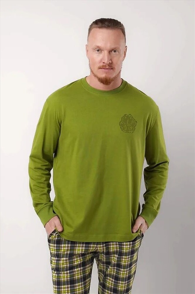 ID товара: 1200136 Состав: 100% Хлопок Сезон: Демисезон Длина: Полная Фасон: Прямой Рукав: Длинные Декоративные элементы: Принт Основная ткань: Хлопок Страна бренда: Россия Страна производства: Россия Набор мужской состоящий из джемпера и брюк. Джемпер из кулирной глади с карбоном, округлой горловиной, длинным рукавом и стильным принтом. Брюки из клетчатого трикотажа с карбоном, на поясе с резинкой и регулируемым шнуром, по бокам удобные карманы. Комментарии к товару