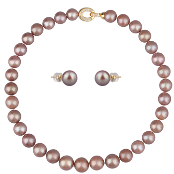 Изготовлено из ювелирного сплава на основе латуни с гальваническим покрытием золото. Изделие украшает жемчуг диаметром 10-12мм цвета карамель. Длина колье 44-46см. Пусеты. *Цвет и форма жемчужин может отличаться от изображенной на фото.