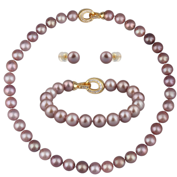 Изготовлено из ювелирного сплава на основе латуни с гальваническим покрытием золото. Изделие украшает жемчуг диаметром 10-12мм цвета мускат. Длина колье 44-46см. Длина браслета 19-20см. Пусеты 10-11мм. *Цвет и форма жемчужин может отличаться от изображенн
