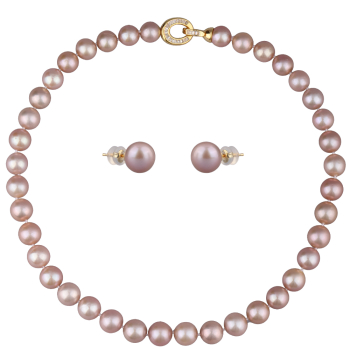 Комплект Эдисон пыльная роза (жемчуг 10-11мм; покрытие золото) 44-46см