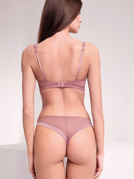 Производитель: Lormar мода Комплект: бюстгальтер-бралетт с мягкой чашкой без косточек (съемный формованый вкладыш без пуш-апа) и трусики-бразильяна. Бочок бюста усилен вертикальными пластинами и выполнен из двух слоев микрофибры. По всему нижнему краю изделия проходит широкая резинка, обтянутая микрофиброй, для лучшей посадки. Застежка в 2 ряда на 4 позиции. Несъемные регулируемые бретели. Высота бочка трусиков 3,5 см. Средняя посадка. Выполнен из мягкой микрофибры и сетки с бесшовным краем. Коллекция "Extraordinary".