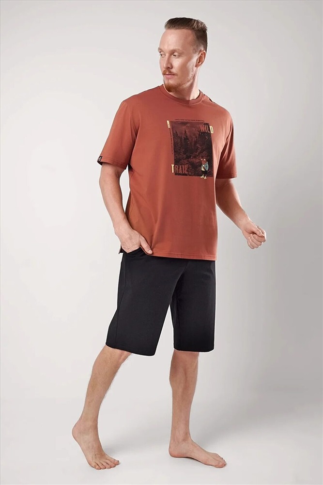 ID товара: 1200178 Состав: 100% Хлопок Сезон: Демисезон Длина: Средняя Фасон: Прямой Рукав: короткие Декоративные элементы: Принт Основная ткань: Хлопок Страна бренда: Россия Страна производства: Россия Набор мужской для дома состоящий из футболки и шорт. Футболка из хлопковой кулирной глади с круглым вырезом горловины, коротким рукавом и дизайнерским принтом. Шорты из плотной кулирной глади на эластичном поясе с функциональными карманами и шнуром. Комментарии к товару