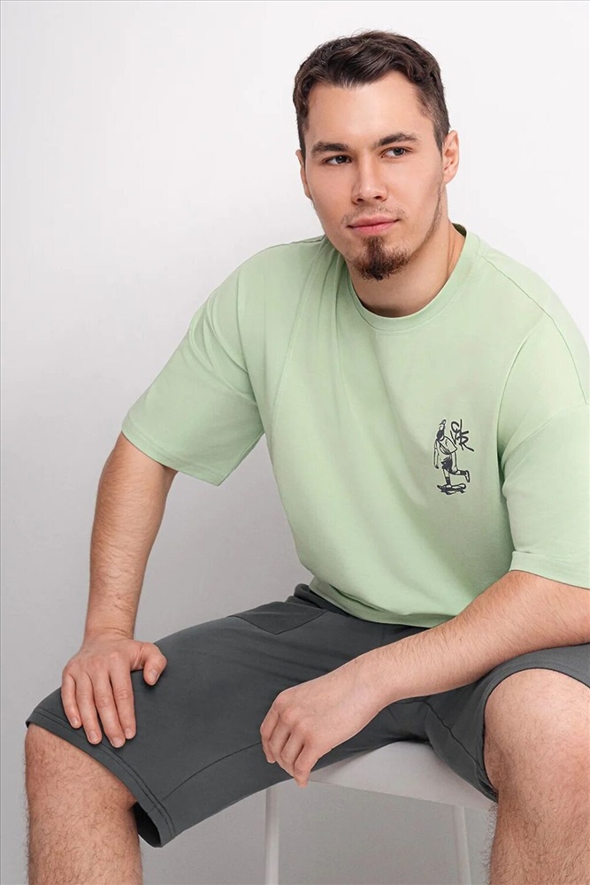 ID товара: 1200402 Состав: 92% Хлопок, 8% Эластан Сезон: Демисезон Длина: Средняя Фасон: Свободный Рукав: короткие Декоративные элементы: Принт Основная ткань: Хлопок Страна бренда: Россия Страна производства: Россия Набор мужской для дома состоящий из футболки и шорт. Футболка из однотонной кулирной глади с круглым вырезом горловины, декоративным резом, коротким рукавом и стильным принтом. Шорты из футера на эластичном поясе с функциональными карманами и шнуром. Комментарии к товару