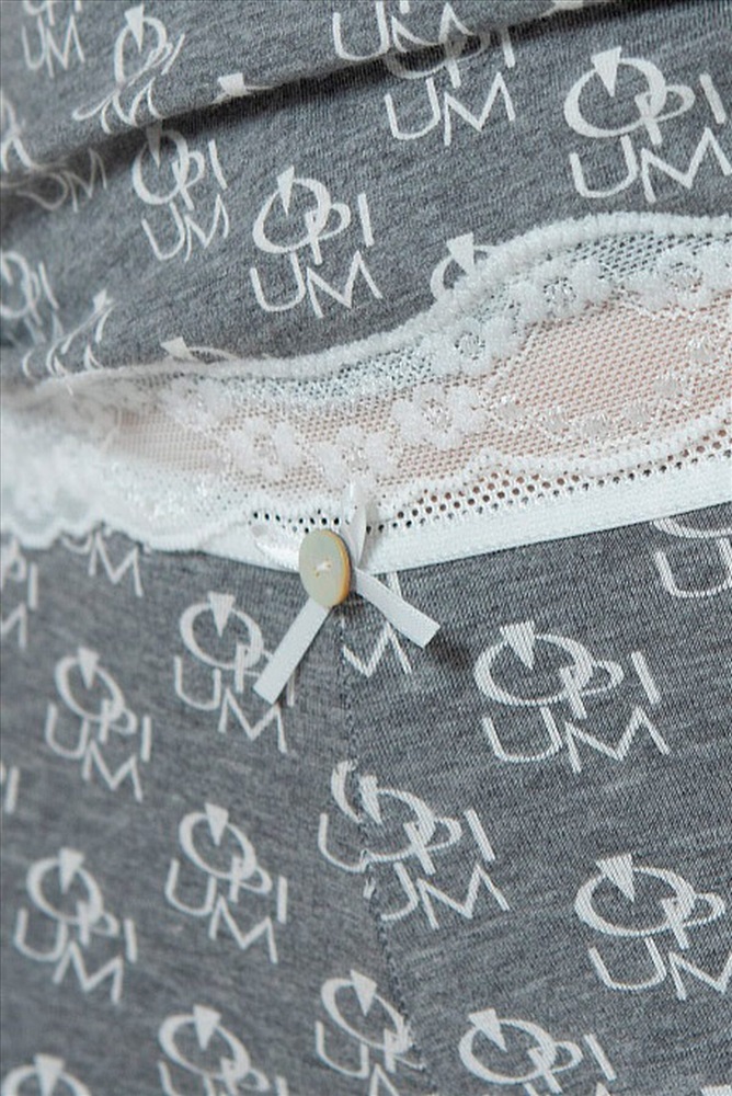 Очаровательный комплект: майка и трусики-шорты. Выполнен из хлопкового трикотажа с фирменным принтом. Сочетание серого меланжа и молочного кружева приятно глазу. Бантики с перламутровой пуговкой украшают и топ, и шорты. Бретели майки регулируются по длине. Такой симпатичный комплект можно использовать не только как белье, но и как легкую пижамку для сна.