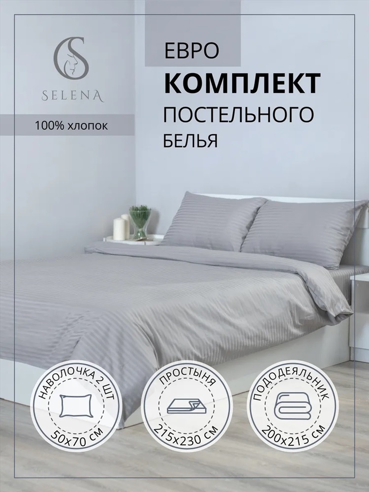 Комплект постельного белья ТМ Selena из страйп-сатина отличается приятным и сдержанным дизайном, особой мягкостью, прочностью и длительным сроком службы. Натуральный 100% хлопок в составе страйп-сатина делает его гипоаллергенным. Благодаря особой выработке такое постельное белье смотрится строго, дорого и эффектно, поэтому его так любят не только хозяйки, но и специалисты сферы гостиничного бизнеса. Пододеяльник 200х215 см - 1шт, простыня 215х230 см - 1шт, наволочки 50х70 - 2шт.