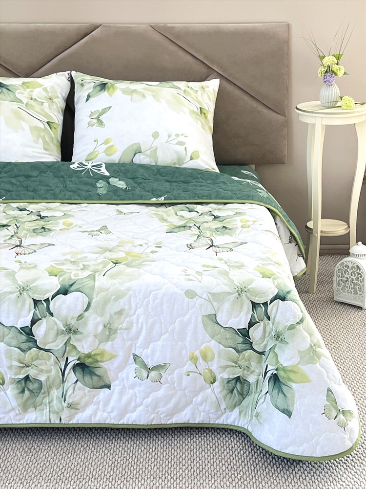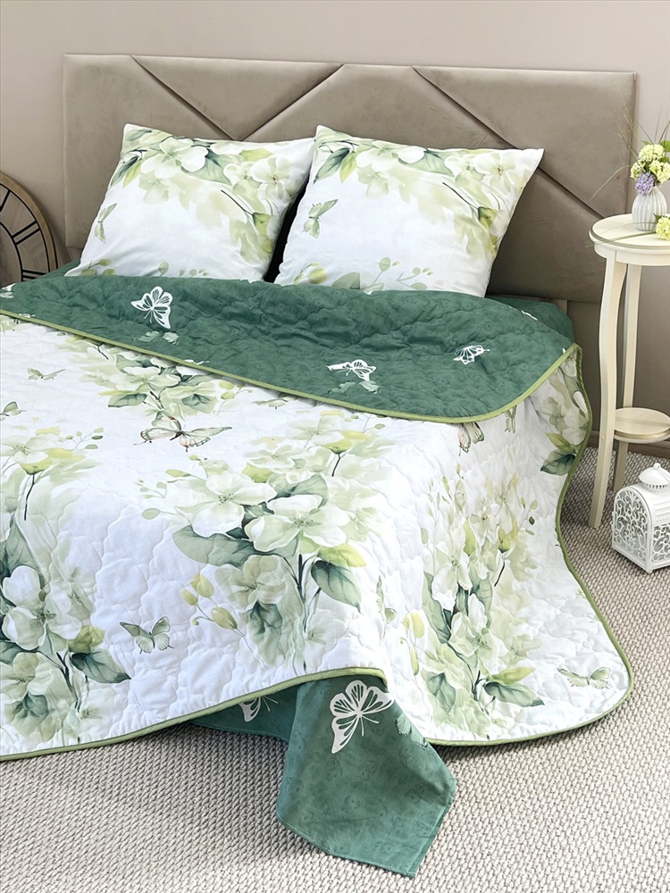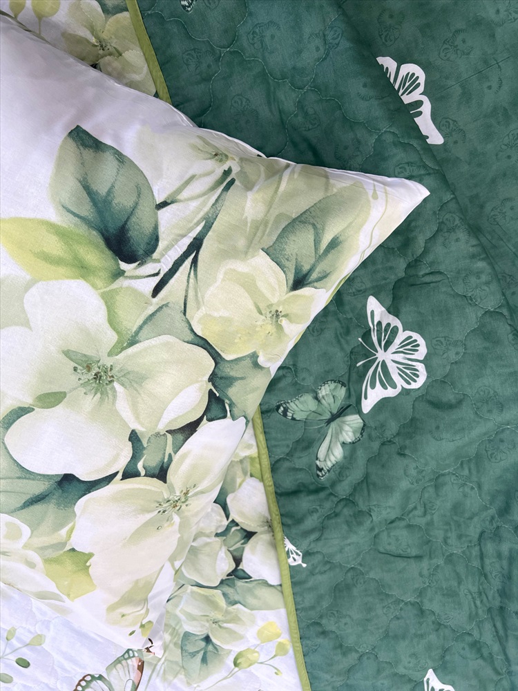 Состав: хлопок / пэ Модель: Комплект постельного белья с одеялом New Style Эко КП24-1413 Тип товара: КПБ с одеялом Материал: поплин | наполнитель синтепон | наполнитель синтепон | поплин Бренд: VV Viola Фиксация: без резинки НДС: 5% Рисунок: цветы Сезонность: лето | осень | весна | зима Уникальность набора в том, что в него входят: наволочки, простыня и легкое всесезонное одеяло. Это современное и очень удобное решение, которое идеально подходит тем, кто хочет быстро застилать кровать. Покупая постельные комплекты с одеялом вы экономите на покупке отдельного одеяла. Так же одеяло можно использовать как покрывало, используя его с двух сторон. Комплект легко стирается в обычной машине. Состав комплекта: поплин плотностью 110 г/м2 (100% хлопок), наполнитель - синтепон 150 г/м2 Края одеяла обработаны окантовочным материалом, наволочки клапан Комплектация и размеры: Набор 1,5 сп. - Одеяло 205х142, Простыня 215х150 см (±3 см) 1 шт, Наволочка 70х70 см (±1 см) 2 шт Набор 2 сп. с евро простыней - Одеяло 205х172, Простыня 240х215 см (±3 см) 1 шт. Наволочка 70х70 см (±1 см) 2 шт Набор малое евро - Одеяло 220х205, Простыня 240х215 см (±3 см) 1 шт, Наволочка 70х70 см (±1 см) 2 шт Набор семейный - Одеяло 205х142 см 2 шт; Простыня 240х215 см (±3 см) 1 шт; Наволочка 70х70 см (±1 см) 2 шт Внимание: Цвета материалов на сайте могут незначительно отличаться от реальных из-за особенностей цветопередачи монитора. Таблица размеров и веса