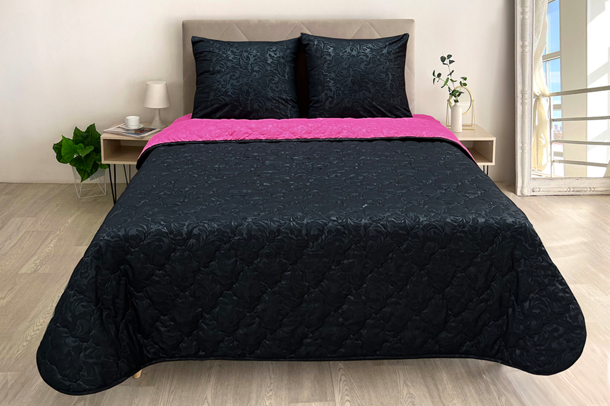 Комплект постельного белья с одеялом New Style КМ-028 черный-фуксия