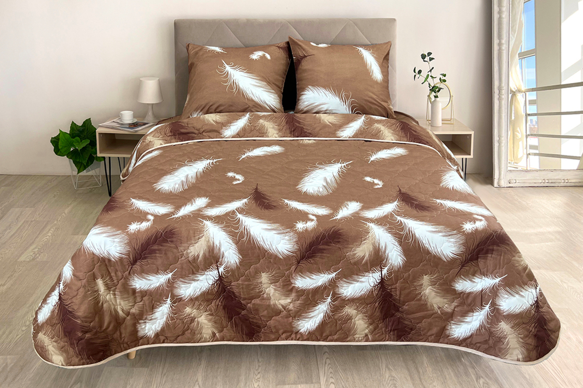 Состав: 100% пэ Модель: Комплект постельного белья с одеялом New Style КМ4-1029 Тип товара: КПБ с одеялом Материал: полисатин | наполнитель синтепон | наполнитель синтепон | полисатин Бренд: VV Viola Фиксация: без резинки НДС: 5% Рисунок: разное Сезонность: лето | осень | весна | зима Уникальность набора в том, что в него входят: наволочки, простыня и легкое всесезонное одеяло. Это современное и очень удобное решение, которое идеально подходит тем, кто хочет быстро застилать кровать. Покупая постельные комплекты с одеялом вы экономите на покупке отдельного одеяла. Так же одеяло можно использовать как покрывало. Комплект легко стирается в обычной машине. Состав комплекта: Полисатин 90 г/м2, одеяло - наполнитель синтепон 150 г/м2. Комплектация и размеры: Набор 1,5 сп. - Одеяло 205х142, Простыня 215х150 см (±3 см) 1 шт, Наволочка 70х70 см (±1 см) 2 шт Набор 2 сп. евро - Одеяло 205х172, Простыня 240х215 см (±3 см) 1 шт. Наволочка 70х70 см (±1 см) 2 шт Набор малое евро - Одеяло 220х205, Простыня 240х215 см (±3 см) 1 шт, Наволочка 70х70 см (±1 см) 2 шт Внимание: Цвета материалов на сайте могут незначительно отличаться от реальных из-за особенностей цветопередачи монитора. Таблица размеров и веса