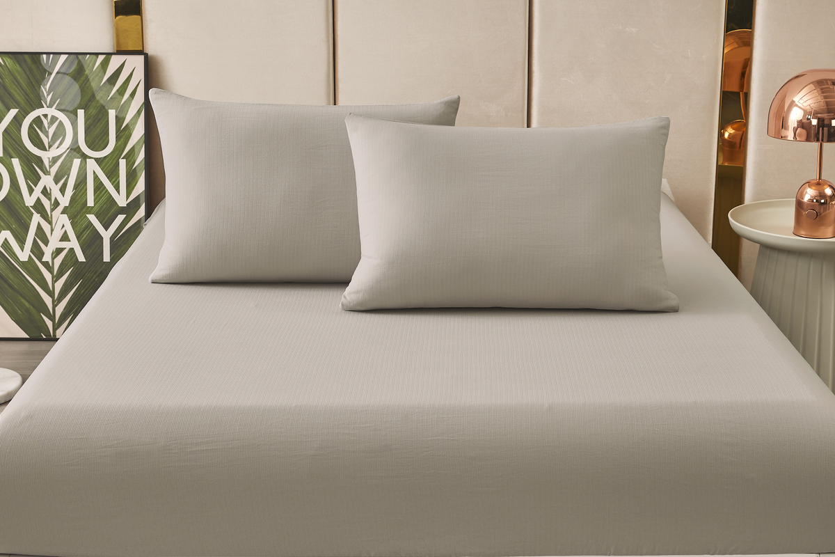 Застежка: молния Комплект постельных принадлежностей, простыня на резинке + 2 наволочки НОВИНКА от бренда Мерцана - надежный и качественный комплект постельных принадлежностей: простыня на резинке + 2 наволочки на молнии! Постельное белье выполнено из уникальной ткани. Jaquard Stripe - это специально разработанная новая ткань для постельного белья, пока не имеет аналогов. Она очень мягкая, приятная на ощупь, прекрасно вентилируется и отводит влагу. Фактура ткани имеет изысканный вид. В комплект входит простынь 180х200 см на РЕЗИНКЕ по всему периметру, которая обеспечивает надежную фиксацию на матрасах высотой до 28 см, а также две наволочки 50х70см на молнии. Материал изделия сохраняет цвет после большого количества стирок, не образует катышек, не электризуется и не накапливает пыль. Ваша кожа будет дышать, а вы будете наслаждаться мягкостью и удобством во время сна! Обращаем ваше внимание, в комплекте НЕТ ПОДОДЕЯЛЬНИКА в этом и есть особенность данной модели. К однотонному постельному белью вы сможете подобрать любой пододеяльник. Простынь на резинке 2-х спальная удобная и практичная в использовании. Благодаря резинке её можно применять не только на матрас кровати, но и в качестве защиты дивана от пыли и шерсти животных. Наволочки на молнии универсального размера 50х70 см подойдут на любую подушку. Покупая уникальный комплект постельных принадлежностей, вы сможете найти применение изделиям как в совместном использовании для сна, так и для создания уюта в вашей квартире.