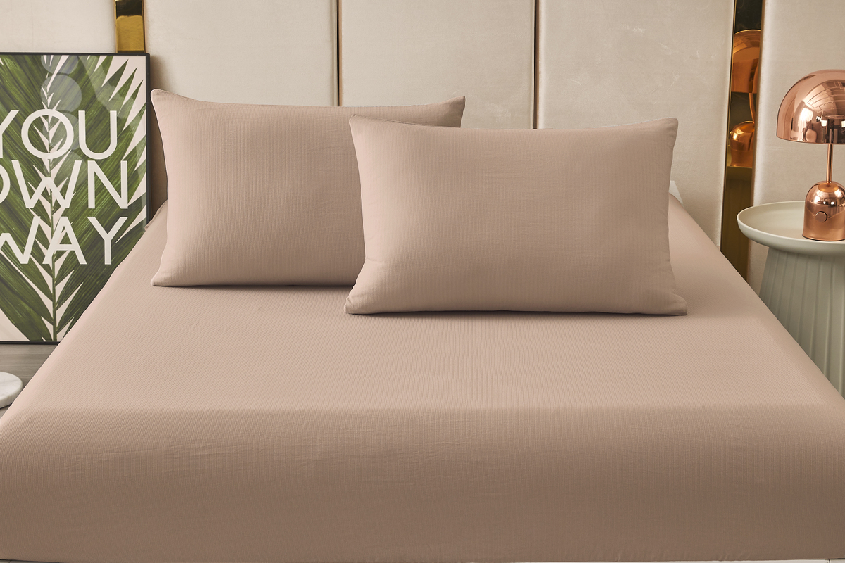 Модель: Комплект постельных принадлежностей, простыня на резинке Борт 25 + 2 наволочки 70*70 мокко