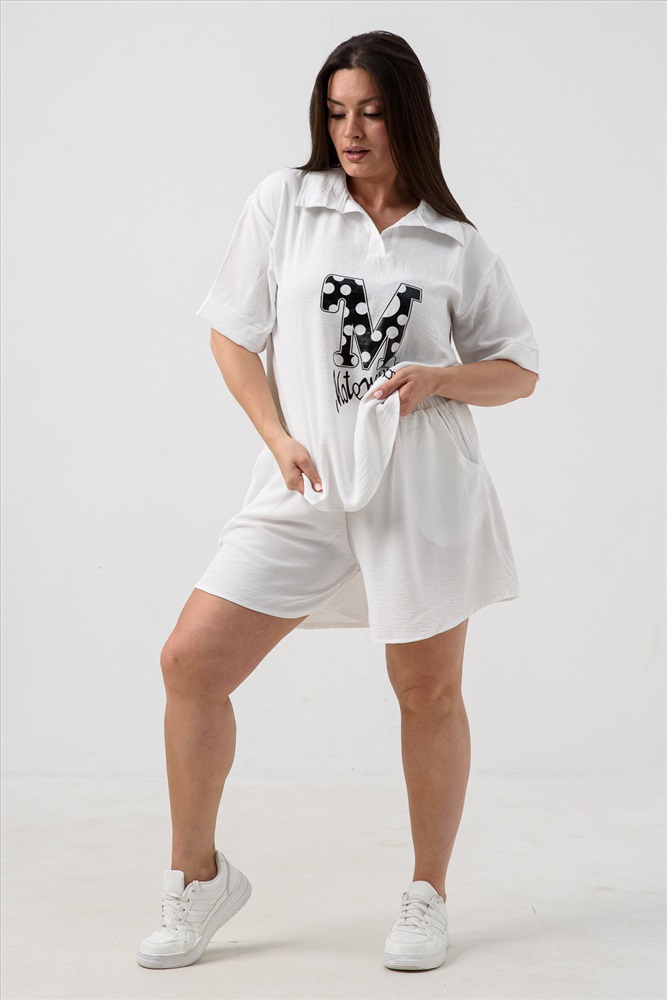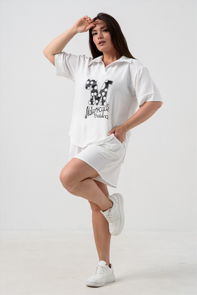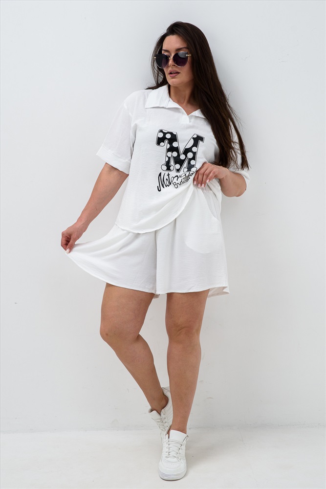 Состав: 100% полиэстер Модель: Комплект (рубашка+шорты) с печатью 52469 Тип товара: костюм с шортами Материал: сингапур | сингапур Бренд: Натали Суслова Карман: боковые Особенности: на резинке Отделка: с карманами | с печатью Рисунок: надпись Рукав: короткий рукав Сезонность: лето | осень | весна Силуэт: свободный Стиль: повседневный Воротник: отложной воротник Застежка: без застежки Стильный и необычный костюм в сочетании с шортами - это отличный выбор на лето! Представляем вам новинку - женский костюм-двойка, состоящий из футболки и шорт. Наряд состоит из свободной футболки-рубашки с однотонным принтом и шорт свободного кроя на резинке. Для удобства шорты имеют 2 кармана. Костюм подходит для активного отдыха, для путешествий, пикников, а также для повседневной носки. Выполнен из сингапура, который дышит и дает комфорт в жаркую погоду. Подходит как взрослым женщинам, так и подросткам. Таблица размеров и веса
