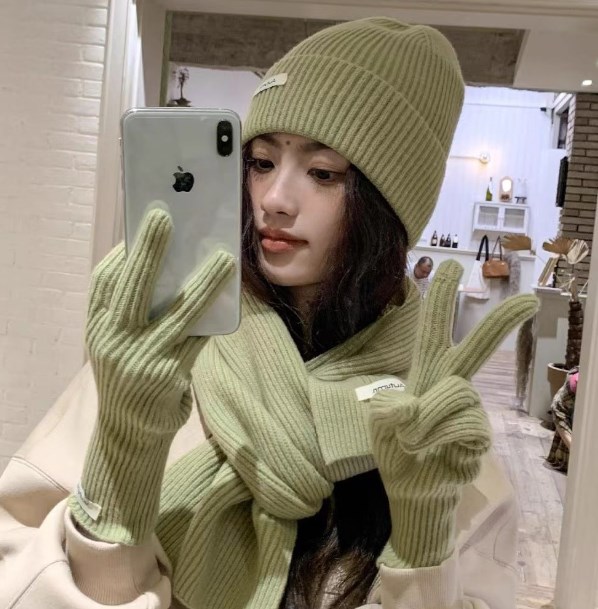 И кажется, моя мечта сбылась! 😍 Этот комплект (шапка, шарф, перчатки) – это и есть тот самый плед, только в формате стильного аксессуара. Цвет "оливка" сейчас на пике популярности🫒 Вязка – как бабушкина забота. 👵 А тепло… ммм… просто космос! 🚀
