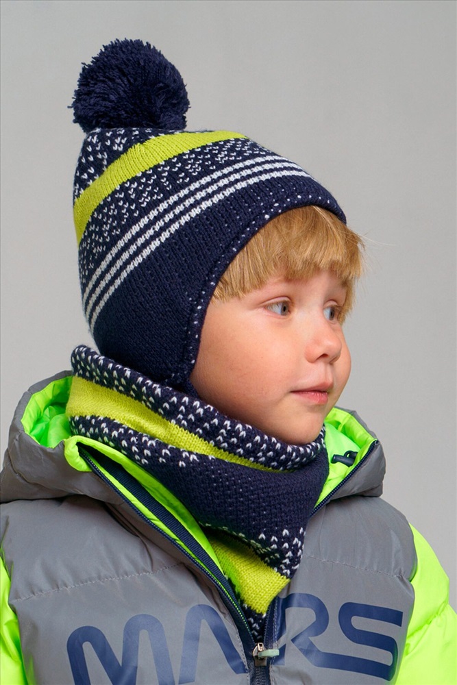 • Комплект из вязаного трикотажа: шапка, снуд • пряжа из акрила: легкая, теплая, гипоаллергенная • подкладка из мягкого, теплого флиса • помпон из ниток • при желании можно использовать завязки