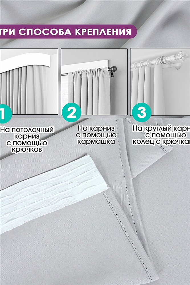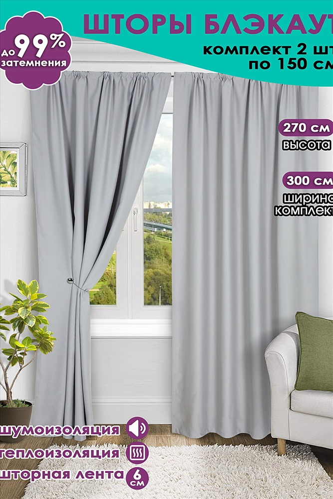 ID товара: 893768 Состав: Полиэстер Сезон: Весна/Лето Вид ткани: Блэкаут Страна бренда: Россия Страна производства: Россия Комплект штор из ткани блэкаут (black out) это идеальное решение на окна в детскую комнату, в спальню или в комнату для гостиной, они обеспечат надежную защиту от солнца за счет многослойного полотна со степенью затемнения от 70 до 99%. Однотонные затемняющие портьеры 2 штуки (150 см ширина каждой без сборки) в скандинавском стиле, плотные, матовые, без рисунка, они способны украсить любой интерьер как готовые светонепроницаемые шторы блэкаут для зала, солнцезащитные занавески на кухню длинные или как легкие декоративные блек аут для дачи на окно в гостиную. Ткань шторы blackout мягкая, приятная на ощупь, не выгорает, выполнена по специальной технологии переплетения волокон в виде трехслойного плетения (между внешними цветными слоями декоративной ткани присутствует внутренний слой из черной нити, которая поглощает свет). Так же недорогие комнатные теневые занавески блэкаут на шторной ленте 6 см имеют теплоизоляционные свойства и поглощают часть уличного шума. Каждый человек нуждается в здоровом, продолжительном сне - и наши красивые ночные шторы блекаут помогут в этом Вам и Вашей семье, в том числе в период белых ночей и даже днем. Комментарии к товару
