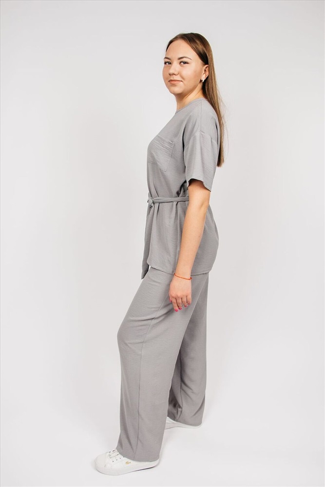 Страна производства: Россия Костюм из легкой струящейся ткани, простой в своем исполнении, обладает особым шармом. Прямые брюки, свободного кроя верх - невероятно привлекательный цвет создают тот самый гармоничный образ стильной леди. Брюки на резинке, есть карманы. Блуза свободного кроя, на полочке карман, рукав спущенный. В комплекте пояс из основной ткани. Уход за изделием: бережная стирка до 30 градусов; нельзя отбеливать; деликатный отжим; гладить при t не более 110 С; гладить с изнанки. Возможна усадка. Допуск отклонения длины при массовом производстве 1-3 см является нормой. Модель рассчитана на рост 170-176 см.