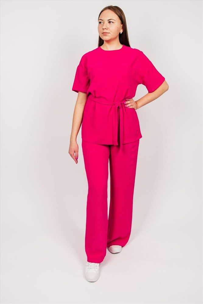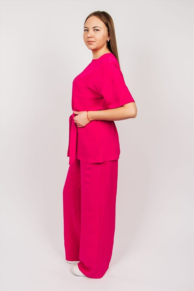 Страна производства: Россия Костюм из легкой струящейся ткани, простой в своем исполнении, обладает особым шармом. Прямые брюки, свободного кроя верх - невероятно привлекательный цвет создают тот самый гармоничный образ стильной леди. Брюки на резинке, есть карманы. Блуза свободного кроя, на полочке карман, рукав спущенный. В комплекте пояс из основной ткани. Уход за изделием: бережная стирка до 30 градусов; нельзя отбеливать; деликатный отжим; гладить при t не более 110 С; гладить с изнанки. Возможна усадка. Допуск отклонения длины при массовом производстве 1-3 см является нормой. Модель рассчитана на рост 170-176 см.