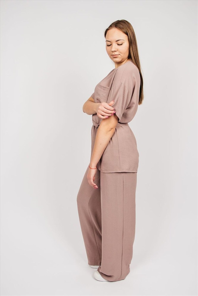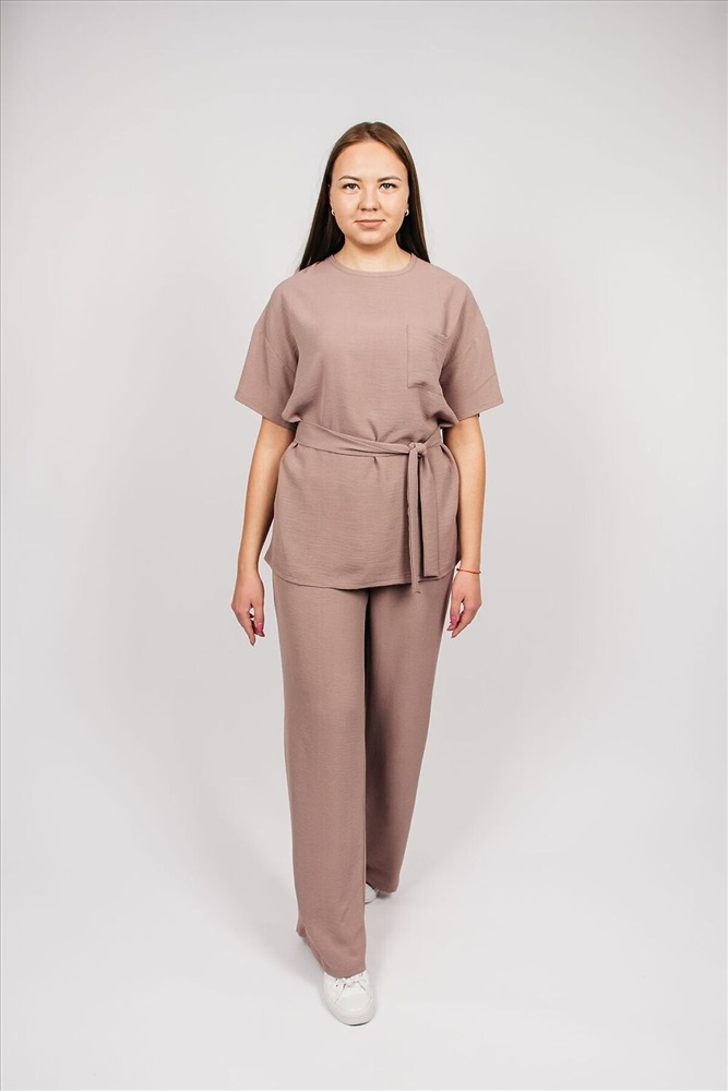ID товара: 982009 Состав: 92% Полиэстер, 8% Эластан Сезон: Весна/Лето Длина: Полная Фасон: Прямой Рукав: короткие Крой брючин: Прямой Декоративные элементы: Пояс Основная ткань: Полиэстер Стиль: повседневный Вид ткани: Сингапур Страна бренда: Россия Страна производства: Россия Костюм из легкой струящейся ткани, простой в своем исполнении, обладает особым шармом. Прямые брюки, свободного кроя верх - невероятно привлекательный цвет создают тот самый гармоничный образ стильной леди. Брюки на резинке, есть карманы. Блуза свободного кроя, на полочке карман, рукав спущенный. В комплекте пояс из основной ткани. Уход за изделием: бережная стирка до 30 градусов; нельзя отбеливать; деликатный отжим; гладить при t не более 110 С; гладить с изнанки. Возможна усадка. Допуск отклонения длины при массовом производстве 1-3 см является нормой. Модель рассчитана на рост 170-176 см. Комментарии к товару