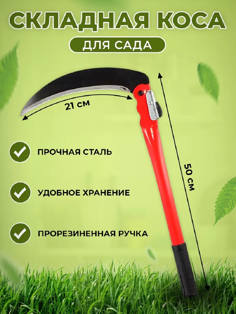 Тип товара: коса Назначение: для дачи Скидка: любая | от 10% и больше Стильная и удобная коса необходима для небольшого сада и огорода. Садовый инструмент длиной 40см и 50см особенно полезен для покоса сорняков или остатков побегов после сбора огорода. Простая конструкция косы не требует особых навыков применения, не требует зарядки или топлива. Косовище цилиндрической формы удобно держать в руке. Ствол из высокопрочного металла, ровный, целостный, а значит, безопасен в использовании. Рукоятка прорезиненная, комфортная при покосе. Компактное загнутое полотно, достаточно большое и подходить для скашивания дачного участка. Лезвие из литой стали долговечное и прочное. Мини-косу можно разобрать или собрать и хранить в шкафу, на полке, в углу сарая. Такой инструмент удобно возить с собой на дачу, поле. Не боится ручной инвентарь смешанных трав, кустарников, болотистых мест. Мини секач отлично убирает траву возле плодовых деревьев, ягодных кустов, не повреждая их. По сравнению с современными электрическими косилками складная коса бесшумная. Поэтому, косить траву можно с самого утра, когда она еще влажная и мягкая. Таблица размеров и веса