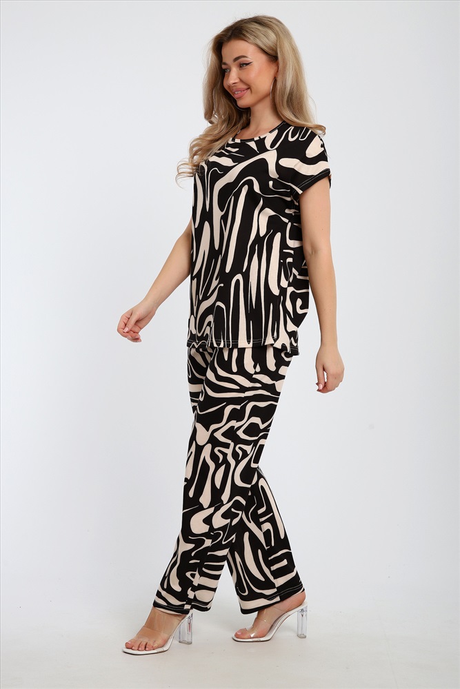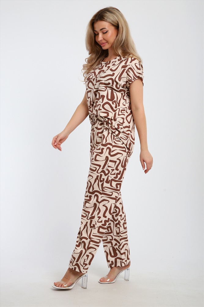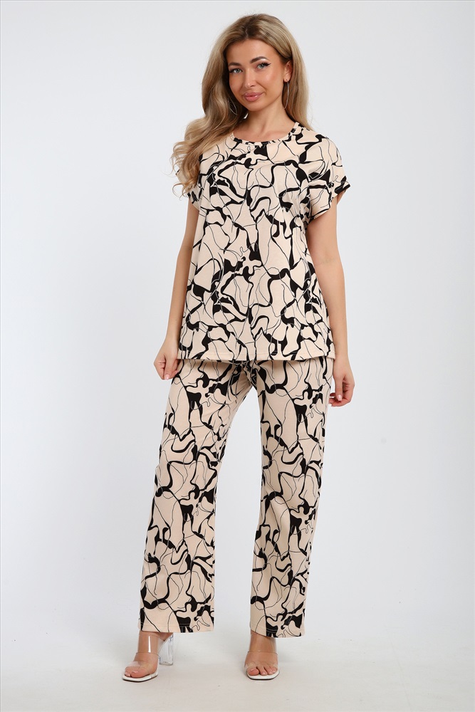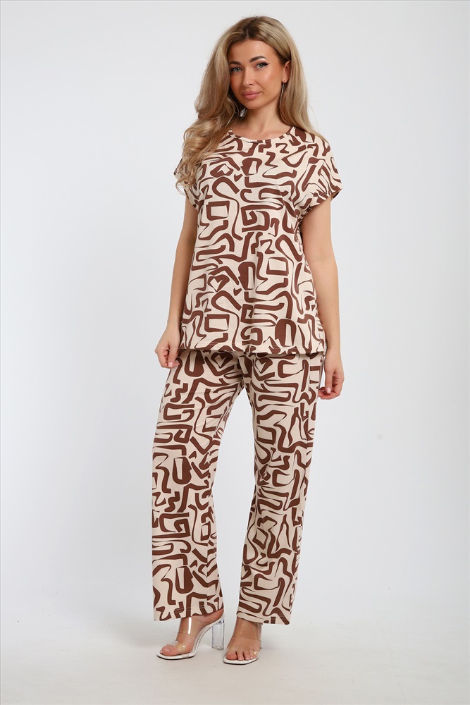 Состав: хлопок 100% Модель: Костюм 059 Тип товара: костюм с брюками Материал: кулирка | кулирка Бренд: Rozkova KV Карман: без карманов Назначение: для дома НДС: 5% Особенности: на резинке Посадка: высокая посадка Рисунок: абстракция | геометрия Рукав: короткий рукав Сезонность: лето | осень | весна | зима Силуэт: свободный Стиль: домашний | повседневный Воротник: без воротника Застежка: без застежки Костюм женский выполнен из кулирки 100% хлопок, состоит из футболки со спущенным плечом и брюк. Брюки свободного кроя на поясе, горловина футболки обработана узким кантом. Костюм очень комфортный, удобный, идеально подойдет как для прогулок, так и для дома и отдыха. Таблица размеров и весафутболка