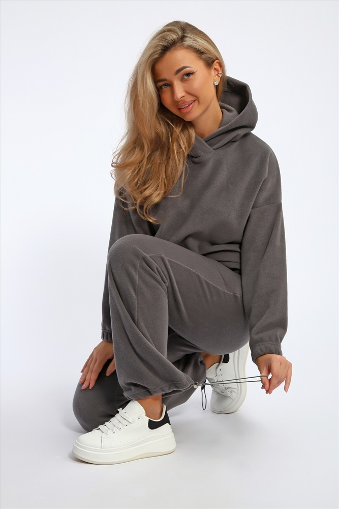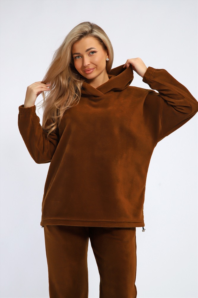 Состав: 100%ПЭ Модель: Костюм 064 Тип товара: костюм с брюками Материал: флис | флис Бренд: Rozkova KV Карман: боковые Особенности: на резинке Отделка: с карманами Посадка: высокая посадка Рукав: длинный рукав Сезонность: лето | осень | весна | зима Силуэт: свободный Стиль: повседневный | туризм, охота, рыбалка Воротник: с капюшоном Застежка: без застежки Костюм женский флисовый состоит из худи свободного кроя и брюк. Худи с капюшоном, рукав на резинке, по низу утягивается эластичным шнурком с фиксаторами. Брюки свободные, с карманами, внизу можно также утягивать эластичным шнурком с фиксаторами. Костюм мягкий, комфортный, отлично подойдет для прогулок в прохладное время года. Таблица размеров и весакофта
