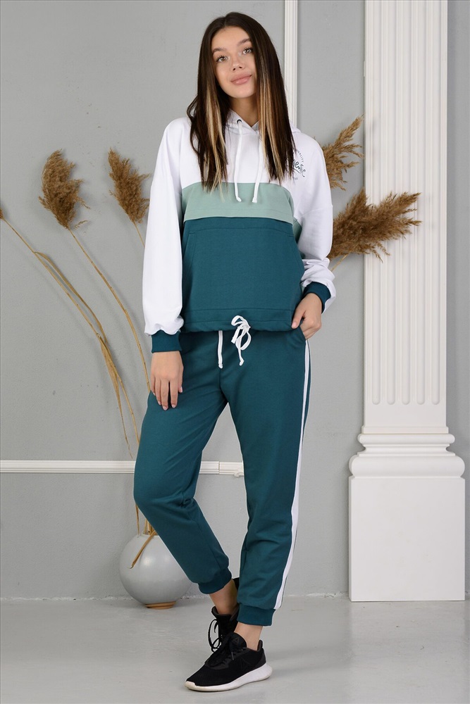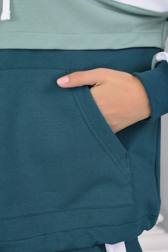 Модный спортивный стиль одежды набирает популярность и все чаще встречается в повседневной жизни. Современная спортивная одежда позволяет выглядеть красиво и стильно и чувствовать себя максимально комфортно и удобно. Костюм 10859 очень красив и нежен. Брюки с боковыми карманами. На толстовке карман-кенгуру. Длина брюк с манжетами по щиколотку. Ширина брюк и толстовки регулируется шнуром.