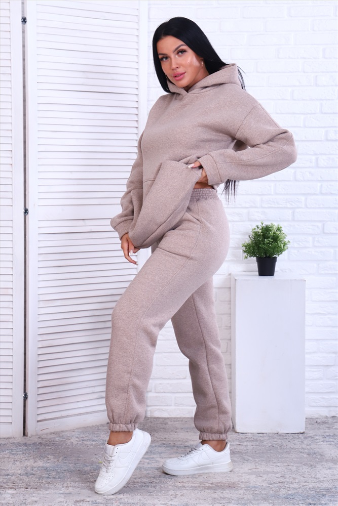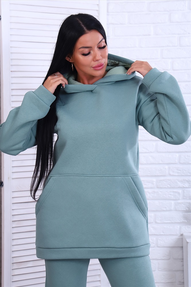 Застежка: без застежки Женский костюм из футера трехнитки с начесом. Костюм состоит из худи и брюк. Худи с капюшоном и большим удобным карманом кенгуру. Костюм идеально походит для прогулок, занятий спортом и повседневной носки в осенне-зимнее время года. На фото представлена шапка 11765, продается отдельно. Костюм в цвете брусника в двух оттенках, без выбора.