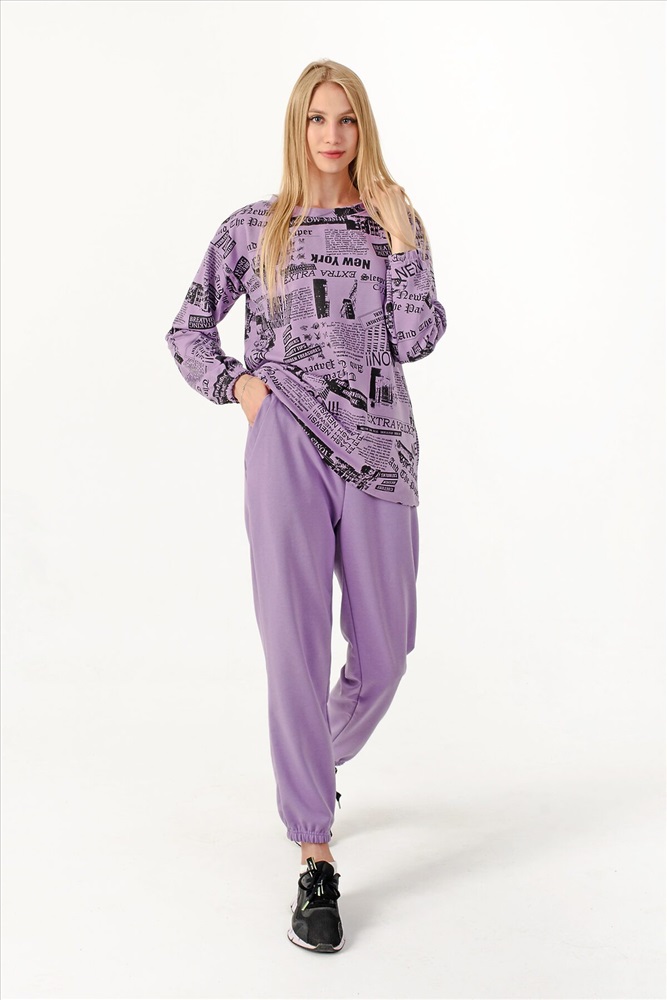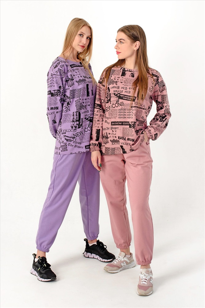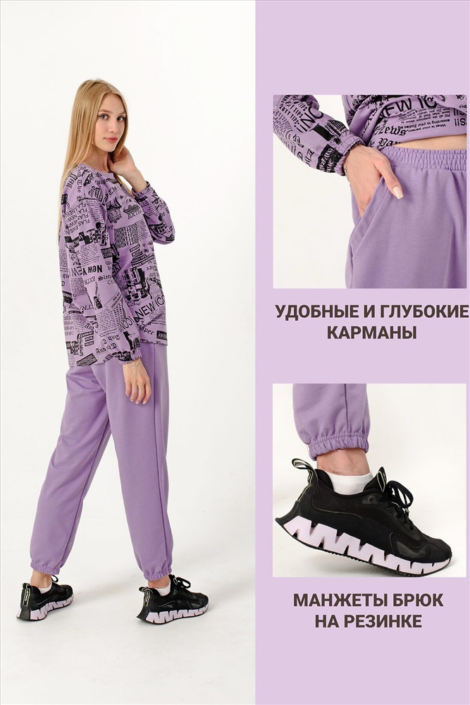 ID товара: 807719 Состав: Хлопок 73%, Полиэстер 22%, Лайкра 5% Сезон: Осень/Зима Длина: Полная Фасон: Свободный крой Рукав: Длинные Крой брючин: Зауженный Рисунок: газетный Тип карманов: В шве Декоративные элементы: Принт Основная ткань: Хлопок | Футер 2-х нитка Стиль: Спортивный Страна бренда: Россия Страна производства: Россия Стильный женский костюм со свитшотом и прямыми штанами на резинке с карманами. Внизу они собраны на резинку в виде манжеты. Поможет Вам быть в тренде этого сезона! Брюки подходят для любого типа фигуры, скрывают ее недостатки и подчеркивают достоинства. Костюм из мягкой кофты со спущенным рукавом и брюками прекрасно подойдет для вечерних и повседневных образов, для прогулок и занятий спортом, а также в качестве костюма для дома. Такой фасон может быть женственным и легким. Брюки из футера очень удобны в качестве повседневной одежды, не сковывают движения. Костюм двойка выполнен из плотной ткани футер 2х нитка (петля), не теряет форму после многочисленных стирок, не скатывается. Комментарии к товару