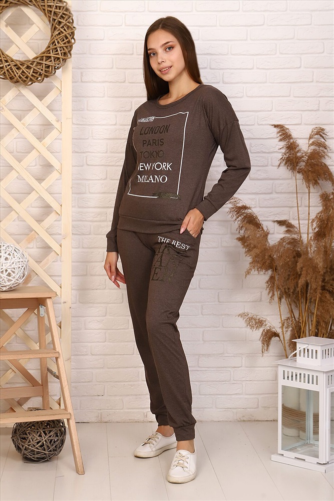 ID товара: 714607 Состав: 50% Хлопок, 50% Полиэстер Сезон: Демисезон Длина: Средняя Фасон: Полуприлегающий Рукав: Длинные Вид застежки: Без застежки Крой брючин: Зауженный Рисунок: Надпись Тип карманов: Втачные Декоративные элементы: Печатный принт Основная ткань: Хлопок Стиль: Спортивный Страна бренда: Россия Страна производства: Россия Костюм из кулирного полотна состоит из кофты и брюк. Кофта - прямой силуэт, горловина круглая, рукав длинный с манжетом, низ изделия на поясе. Брюки прямые, верх на поясе с резинкой, в боковых швах внутренние карманы, низ изделия с манжетом. На полочке и брюках принт. Комментарии к товару