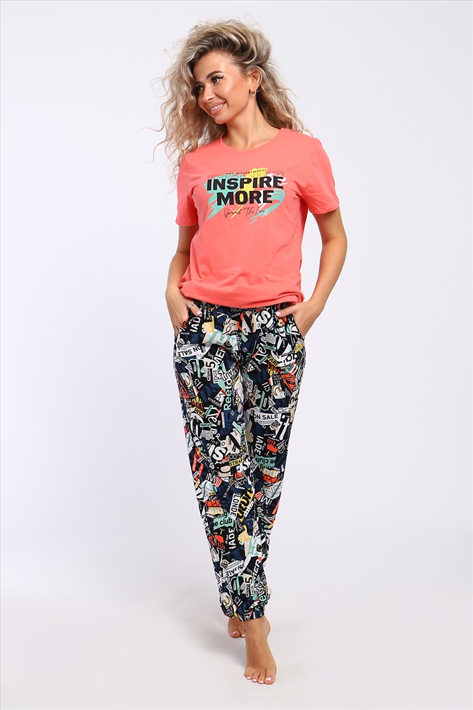 Состав: 100% хлопок Модель: Костюм 13210 Тип товара: костюм с брюками Материал: кулирка | кулирка Бренд: Натали Суслова Карман: боковые Назначение: для дома НДС: 5% Особенности: на резинке Отделка: с карманами | с печатью Посадка: средняя посадка Рисунок: надпись | разное Рукав: короткий рукав Сезонность: лето | осень | весна | зима Силуэт: прямой | свободный Стиль: домашний Воротник: без воротника Застежка: без застежки Костюм состоит из футболки и брюк. Футболка свободная с короткими рукавами. Брюки с карманами на резинке внизу. Таблица размеров и весафутболка